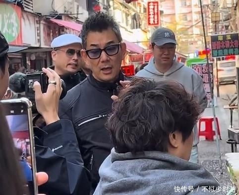 59岁任贤齐回湖北祖宅,肚腩明显仍接地气,街头被围堵合照没架子