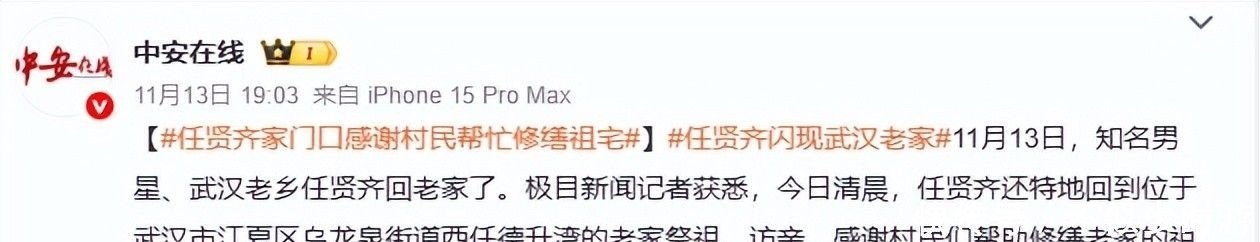 任贤齐这次返乡祭祖,虽只停留短分钟,却给我们带来了一场关于初心与归属的心灵洗礼。